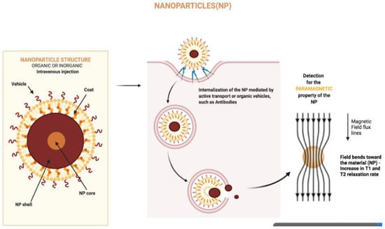 Nanoparticles have the property of shortening local water T1 or T2, as the electronic magnetic moments of nanomaterial atomic components interact with the nuclear moments of surrounding water molecules [130].