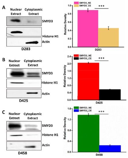 3.2. SMYD3 Is Primarily Expressed in the Nuclei of MB Cells and Targets Cell Cycle Regulators