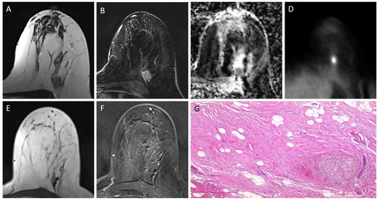 In total, 73 patients were included in this study retrospectively. The local ethics committee approved this study, and due to the anonymization of data, written patient consent was waived. Inclusion criteria comprised newly diagnosed, biopsy-proven treatment-naïve breast cancer with (a) T2 or higher T-stage tumor, (b) triple-negative (TN) tumor of any size, or (c) tumor with a high-risk molecular profile (e.g., Ki67 > 14%, G3, or HER2neu overexpression). Datasets were excluded from radiomics analysis if they were incomplete. All included patients were part of a larger study investigating the utility of PET/MRI in the initial staging of women with newly diagnosed breast cancer. The same inclusion criteria as previously mentioned were applied here.
