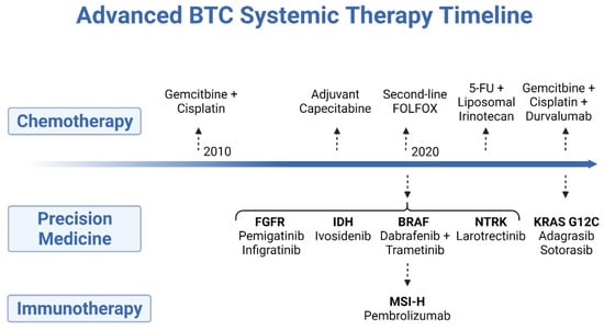 Cowzer, D.; Harding, J.J. Advanced Bile Duct Cancers: A Focused Review on Current and Emerging Systemic Treatments. Cancers 2022, 14, 1800. https://doi.org/10.3390/cancers14071800