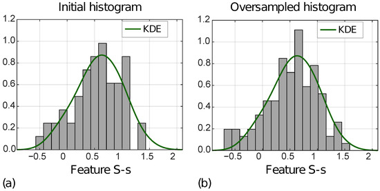 In addition, Table 2 reports MSEs computed between the KDE functions, and the initial and the oversampled feature distributions, respectively, for MVI+ and MVI− instances, separately. For all four features, the MSEs decreased from the ID to the OD.