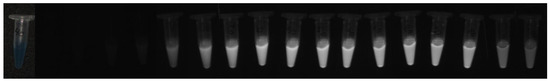 Dilution series of methylene blue visualized by fluorescence imagining device.
