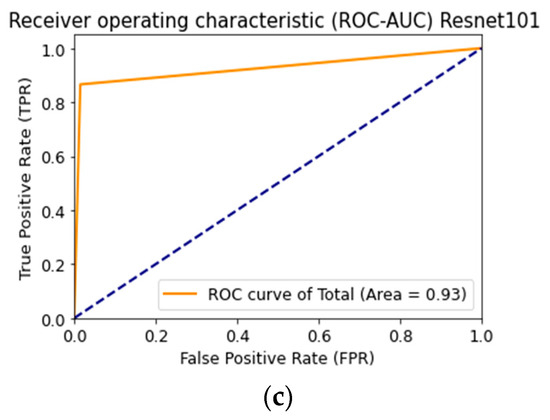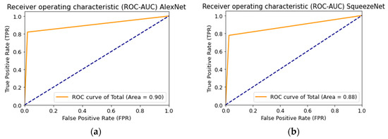 The results predicted by the multimodal neural network from the test sample were converted to a binary form to construct the Receiver Operating Characteristic curve (ROC curve). Each predicted class label consisted of a combination of two characters with a length of 10 characters. The ROC curve represents the number of correctly classified positive values on incorrectly classified negative values.