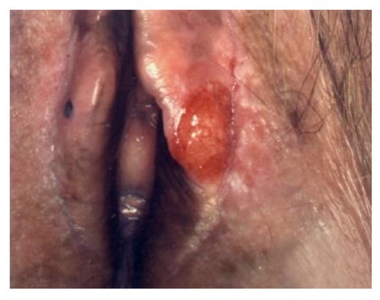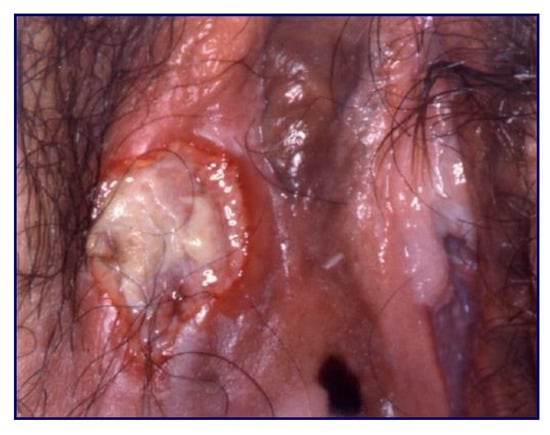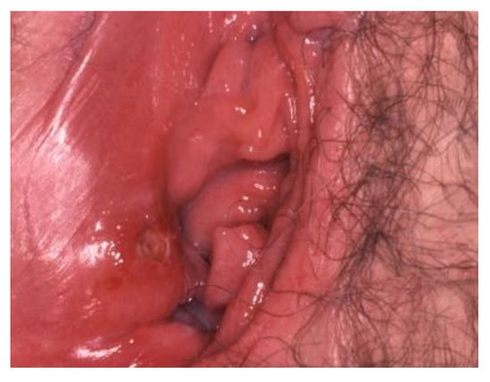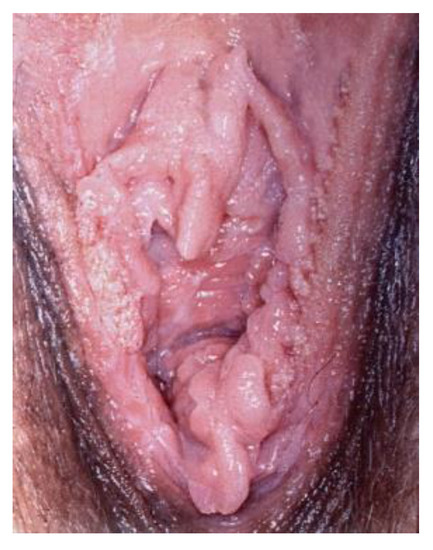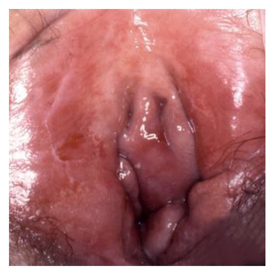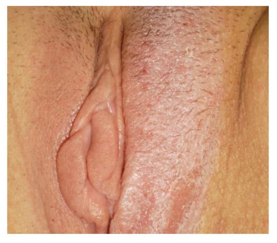 - Doyen, J.; Demoulin, S.; Delbecque, K.; Goffin, F.; Kridelka, F.; Delvenne, P. Vulvar Skin Disorders throughout Lifetime: About Some Representative Dermatoses. BioMed Res. Int. 2014, 2014, 1–6. [Google Scholar] [CrossRef]