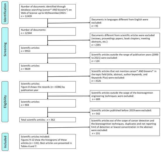 | Articles related to biosensor development | Articles outside the scope of the biorecognition engineering technologies |