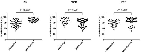 4.3. Expression of EGFR, HER2, and p53