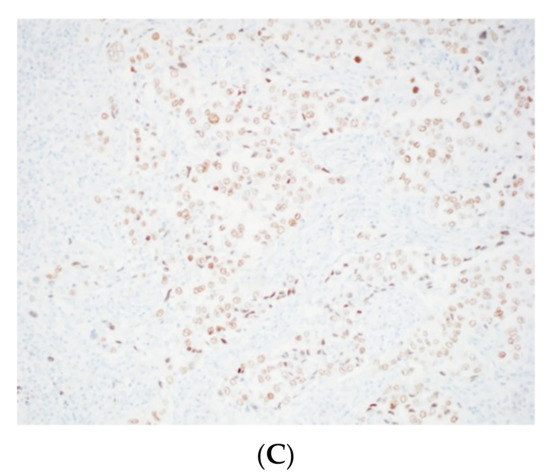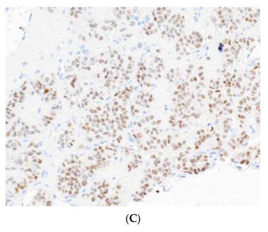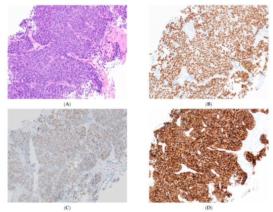 - Liau, J.Y.; Tsai, J.H.; Jeng, Y.M.; Kuo, K.T.; Huang, H.Y.; Liang, C.W.; Yang, C.Y. The Diagnostic Utility of PAX8 for Neuroendocrine Tumors: An Immunohistochemical Reappraisal. Appl. Immunohistochem. Mol. Morphol. 2016, 24, 57–63. [Google Scholar] [CrossRef]