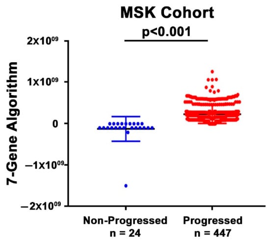 3.2. Assessment of the 7-Gene Algorithm for Prediction of Progression-Free Survival after Treatment in the MSK Cohort