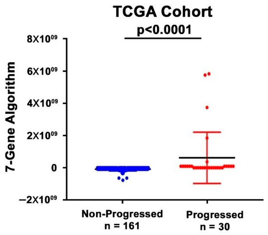3.3. The 7-Gene Progression Algorithm for Prediction of Progression after Treatment