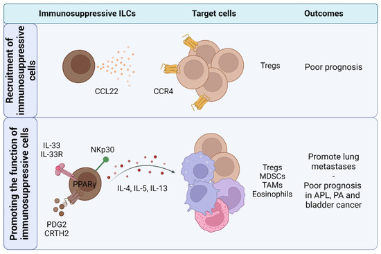 4.3. ILCs Recruit and Promote the Function of Immunosuppressive Cells