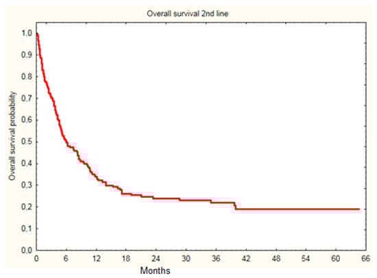 Descriptive statistics were used to characterize baseline demographic features, including disease stage, metastases loci, as well as treatment duration and best response. Progression free survival (PFS) and OS were calculated with the Kaplan–Meier method, and a log-rank test was used for assessing differences between survival curves. The Cox proportional hazard model was used for multivariable analysis. All variables with a p-value < 0.1 in univariate analysis were included in the multivariable model, and 95% confidence intervals (CI) were reported. The differences were considered statistically significant if the p-values were <0.05 [32]. Patients without signs of PD were censored at the last follow-up visit. OS was calculated from the date of treatment start to death or last follow-up. Analysis was performed with Statistica version 13.3.
