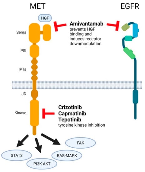 - Yao, H.P.; Hudson, R.; Wang, M.H. Progress and challenge in development of biotherapeutics targeting MET receptor for treatment of advanced cancer. Biochim. Biophys. Acta Rev. Cancer 2020, 1874, 188425. [Google Scholar] [CrossRef] [PubMed]