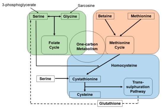 Serum concentrations of serine and glycine are reflective of their dietary intake and de novo synthesis. Changes in serine metabolism are influenced by dietary isocaloric protein restriction (i.e., protein malnutrition). Kalhan et al. [52] observed that there was a doubling serine concentration in the blood and livers of the rats fed the protein-restricted diet and 50% increase in the de novo synthesis of this amino acid while there was no change in the concentration of serine in the kidneys of rats fed with protein-restricted diet. Different studies demonstrated that a restricted-protein diet led to increase the concentration of serine in the blood, though the exact mechanism remains to be elucidated [53,54,55]. Furthermore, the consumption of glycine along biosynthesis of glycine have been associated with high-rate proliferating cancer cell lines.