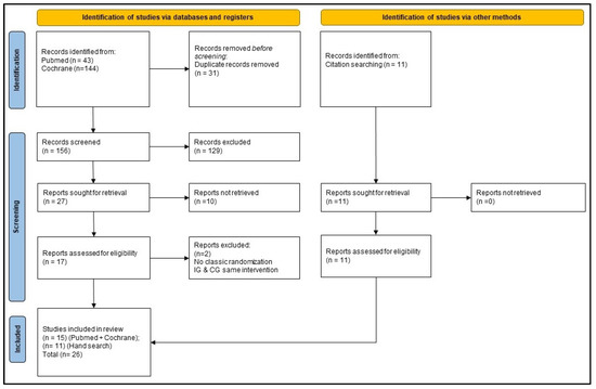 Further, 11 trials were included through a manual search of the bibliographies of the searched trials, so that a total of 26 RCTs were considered in the review.