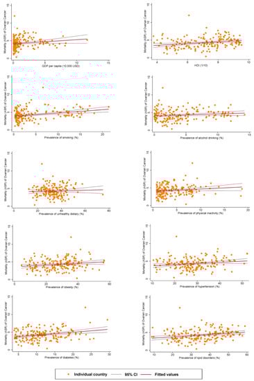 - Bray, F.; Loos, A.H.; Tognazzo, S.; La Vecchia, C. Ovarian cancer in Europe: Cross-sectional trends in incidence and mortality in 28 countries, 1953–2000. Int. J. Cancer 2005, 113, 977–990. [Google Scholar] [CrossRef]