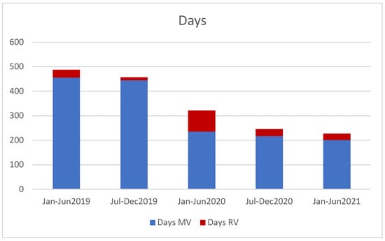 Monitoring activity in person (MV) and remotely (RV) by CTI central office staff, per 6 month period.