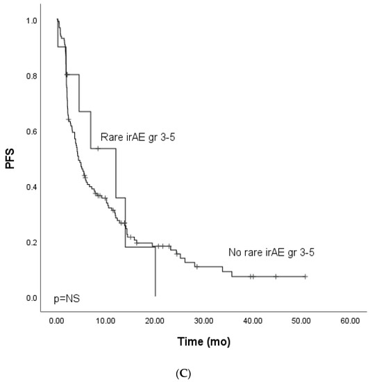 3.4. Immune-Related Gr3–5 Rare Adverse Events, PFS, and OS
