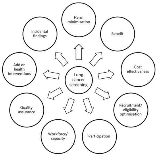 There is clear evidence of benefit for screening with low-dose computed tomography (LDCT) in lung cancer. The National Lung Screening Trial (NLST) [1] and the Dutch–Belgian NELSON trial [2] have shown that LDCT reduces lung-cancer-specific mortality, and the NLST also showed a reduction in all-cause mortality of 6.7% [1]. Other smaller European trials, although underpowered, have also shown findings in keeping with the larger trials [3,4,5]. These trials provide enough evidence to support the implementation of screening for lung cancer based on clinical effectiveness, but there are still challenges that need to be overcome prior to the roll out of a population-based screening programme in Europe. This paper will review areas for which there is good or emerging evidence and the areas which still require investment, research or represent implementation challenges (Figure 1).