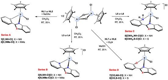Schematic synthesis of the studied half-sandwich Iridium(III) complexes.