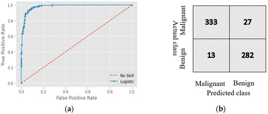 (a) ROC curve and (b) confusion matrix of the proposed model.