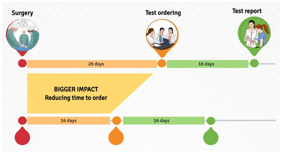 - Losk, K.; Freedman, R.A.; Lin, N.U.; Golshan, M.; Pochebit, S.M.; Lester, S.C.; Natsuhara, K.; Camuso, K.; King, T.A.; Bunnell, C.A. Implementation of Surgeon-Initiated Gene Expression Profile Testing (Oncotype DX) Among Patients with Early-Stage Breast Cancer to Reduce Delays in Chemotherapy Initiation. J. Oncol. Pract. 2017, 13, e815–e820. [Google Scholar] [CrossRef]