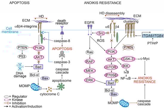 Mechanisms of apoptosis resistance induced by hemidesmosomal proteins.