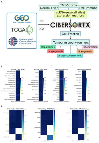 - Massalha, H.; Bahar Halpern, K.; Abu-Gazala, S.; Jana, T.; Massasa, E.E.; Moor, A.E.; Buchauer, L.; Rozenberg, M.; Pikarsky, E.; Amit, I.; et al. A Single Cell Atlas of the Human Liver Tumor Microenvironment. Mol. Syst. Biol. 2020, 16, e9682. [Google Scholar] [CrossRef]