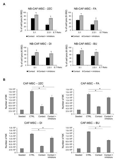 3.3. NB-TA-MSC Primary Cultures Inhibit the Cytolytic Activity of NK Cells