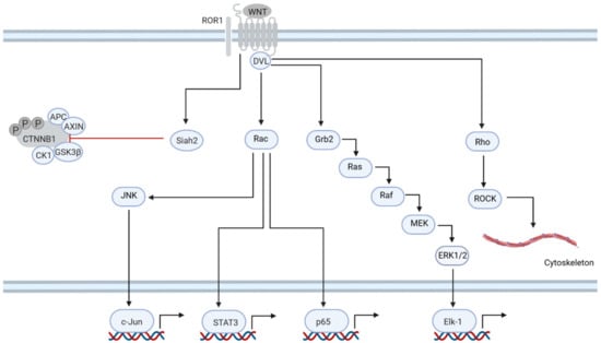 - Hasan, M.K.; Rassenti, L.; Widhopf, G.F., 2nd; Yu, J.; Kipps, T.J. Wnt5a causes ROR1 to complex and activate cortactin to enhance migration of chronic lymphocytic leukemia cells. Leukemia 2019, 33, 653–661. [Google Scholar] [CrossRef]