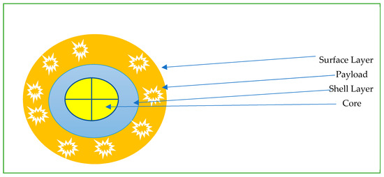 The field of nanomedicine is extremely vast and out of the scope of this review [19,47,48,49,50,51,52]. We aim to briefly discuss some of the available nanoparticles available from an oncological point of view. Nanoparticles (NP) are particles with one dimension less than 100 nm with unique properties that are not found in bulk samples of the same material [53]. Most are based on the same basic structure (Figure 1): the surface layer, shell layer, and core. The basic design is then modified to suit a particular purpose. Nanoparticles are often grouped into polymer and liposome-based drug delivery systems. Nanoparticles have deep tumor penetration and longer retention, and modifications such as PEG help to decrease immune system clearance [53,54]. To optimize delivery to TME, nanoparticles are engineered with the ability to be stable in the blood, escape immune support, and reach the TME with high-pressure penetration [37]. Nanoparticles available for current oncological use include nab-paclitaxel (Abraxane), which is used for breast, pancreatic, and non-small cell lung cancer treatment. Liposomal forms of chemotherapy include doxorubicin hydrochloride, which is commercially available as Caelyx and Myocet; these are used for the treatment of breast cancer, multiple myeloma, ovarian cancer and Kaposi’s sarcoma [55]. Benefits of nanoparticle-based Abraxane decreased the previously associated hypersensitivity reactions with its previous generation of drug known as Cremophor (which was paclitaxel combined with polyoxyethlated castor oil) [56]. Hence, nanoparticles have unique properties due to their size and administration, leading to a varied number of positive benefits [57].