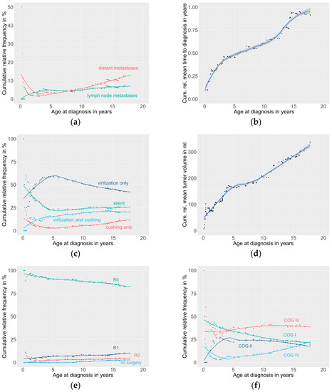 Age defines the clinical presentation and prognosis in children and adolescents with ACTs [17,19,20,25,26]. Patients aged ≥ 4 years more frequently presented with advanced tumor stages, including distant metastases, compared to younger patients. Noteworthy is that complete tumor resection was more frequently achieved in younger patients, while tumor spillage occurred with increasing frequency in older patients.