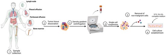 Establishment of patient-derived cell line models. Created with BioRender.com, accessed on 30 October 2022.