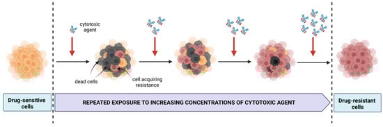 Generation of cell line models resistant to therapeutic agents. Created with BioRender.com, accessed on 30 October 2022.