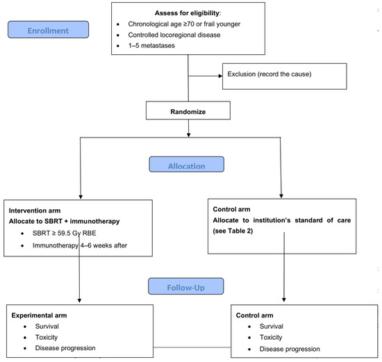 - Palma, D.A.; Olson, R.; Harrow, S.; Gaede, S.; Louie, A.V.; Hasbeek, C.; Mulroy, L.; Lock, M.; Rodrigues, J.B.; Yaremko, B.P.; et al. Stereotactic ablative radiotherapy versus standard of care palliative treatment in patients with oligometastatic cancers (SABR-COMET): A randomized, phase 2, open label trial. Lancet 2019, 393, 2051–2058. [Google Scholar] [CrossRef] [PubMed]