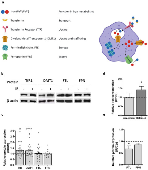 3.6. Macrophage Iron Metabolism Is Affected by IR Exposure