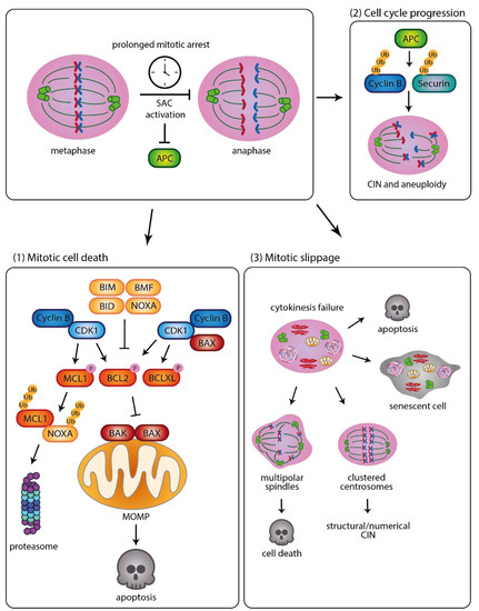 - Sinha, D.; Duijf, P.H.G.; Khanna, K.K. Mitotic slippage: An old tale with a new twist. Cell Cycle 2019, 18, 7–15. [Google Scholar] [CrossRef] [PubMed]