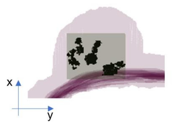 Representation of the SVB option, only the smallest 3D bounding box confined to the tumor region is considered.