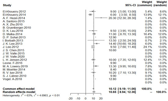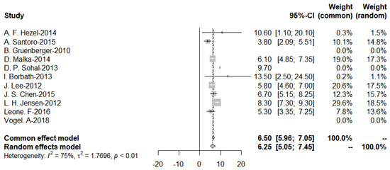 | 19 | Moehler (2014) [23] | II | 102 | Germany | Sorafenib | 400 mg bid orally continuously | GEM | Sorafenib: 64.0 placebo: 64.5 | sorafenib: male: 20 Gemcitabine: male: 23 |