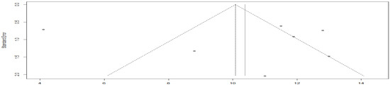 - Sterne, J.A.C.; Sutton, A.J.; Ioannidis, J.P.A.; Terrin, N.; Jones, D.R.; Lau, J.; Carpenter, J.; Rücker, G.; Harbord, R.M.; Schmid, C.H.; et al. Recommendations for examining and interpreting funnel plot asymmetry in meta-analyses of randomised controlled trials. BMJ 2011, 343, d4002. [Google Scholar] [CrossRef]