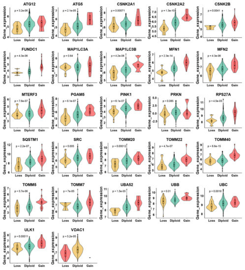 We found that the CNV gains were associated with higher expression of mitophagy genes in 23 of 27 mitophagy genes. Moreover, we observed that the higher risk mitophagy groups were associated with significant higher total CNVs, which was reported to be a prognostic factor for cancer [26].