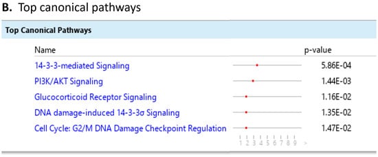 - Krämer, A.; Green, J.; Pollard, J., Jr.; Tugendreich, S. Causal analysis approaches in Ingenuity Pathway Analysis. Bioinformatics 2014, 30, 523–530. [Google Scholar] [CrossRef] [PubMed]