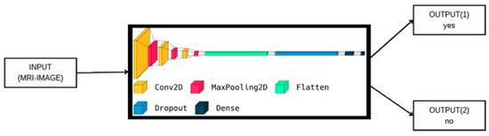 In this section, the datasets used in this paper are discussed in detail. In addition, every stage of the proposed methodology is also discussed in detail. Figure 1 and Figure 2 show the block diagram of the proposed deep method for binary class and multi-class. In Figure 1, the input MRI images are fed directly to the proposed deep model to perform the final decision (yes if the image has tumor detection and no if the image is a normal image). The objective of this classification model is to accurately differentiate between the two classes based on the MRI scan images. In addition, the same scenario was applied to the input MRI images for the multi-classification problem, as shown in Figure 2. In this case (multi-class), the input images are classified into three classes, i.e., meningioma (output 1), glioma (output 2) and pituitary tumors (output 3). The input MRI images in both cases are drawn from two publicly available brain tumor datasets [22,23], which are discussed in detail in the following subsection.