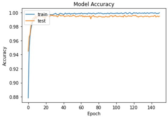 The model is then compiled using the Adam optimizer [27], a sparse categorical cross-entropy loss function [28], and accuracy as the evaluation metric. The Adam optimizer is an algorithm for stochastic optimization that uses adaptive learning rates, while the sparse categorical cross-entropy loss function is used for multi-class classification problems. Accuracy is used as the evaluation metric to measure the performance of the model. Finally, the model is trained for 150 epochs using a batch size of 32 on the training dataset. During training, the model learns to adjust its parameters to minimize the loss function and improve its accuracy on the training data. After training, the model can be evaluated on the test dataset to measure its performance on unseen data. The pseudocode of the steps of our model is shown in Algorithm 1.