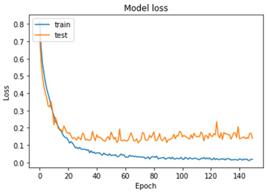 Model loss curves for the training and testing of our model for the multi-classification task.