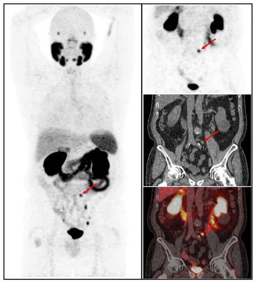- Artigas, C.; Diamand, R.; Shagera, Q.A.; Plouznikoff, N.; Fokoue, F.; Otte, F.-X.; Gil, T.; Peltier, A.; Van Gestel, D.; Flamen, P. Oligometastatic Disease Detection with 68Ga-PSMA-11 PET/CT in Hormone-Sensitive Prostate Cancer Patients (HSPC) with Biochemical Recurrence after Radical Prostatectomy: Predictive Factors and Clinical Impact. Cancers 2021, 13, 4982. [Google Scholar] [CrossRef] [PubMed]