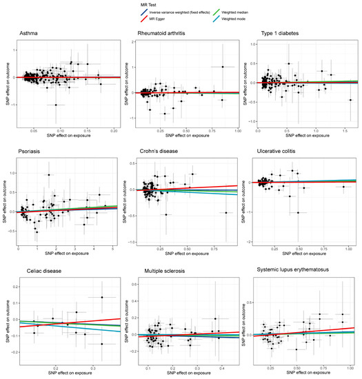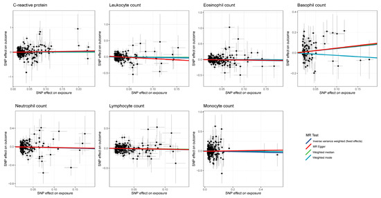 - Burgess, S.; Thompson, S.G. Interpreting findings from Mendelian randomization using the MR-Egger method. Eur. J. Epidemiol. 2017, 32, 377–389. [Google Scholar] [CrossRef] [PubMed]