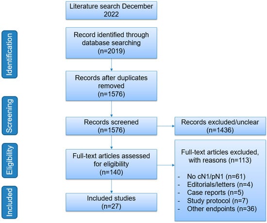 We selected studies according to the following criteria: (1) treatment and outcomes of cN1M0/pN1M0 PCa patients; (2) provision of original data, including RCTs and retrospective studies (no editorial notes); (3) reporting of consecutive cases (no case reports); and (4) provision of systematic reviews and meta-analyses.