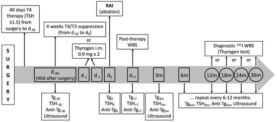 Moreover, the correct timing to measure post-operative TG and the optimal cutoff for stimulated or suppressed postoperative Tg levels, which can confirm or exclude the presence of lesions, have not been identified yet [32,33,34].