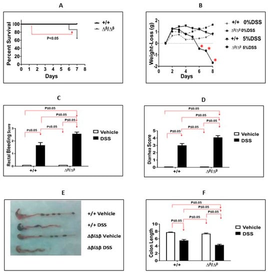 3.1. Effect of STAT3β Deletion on DSS-Induced Colitis in Mice