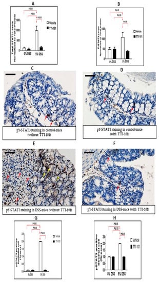 - Robinson, P.; Magness, E.; Montoya, K.; Engineer, N.; Eckols, T.K.; Rodriguez, E.; Tweardy, D.J. Genetic and Small-Molecule Modulation of Stat3 in a Mouse Model of Crohn’s Disease. J. Clin. Med. 2022, 11, 7020. [Google Scholar] [CrossRef]